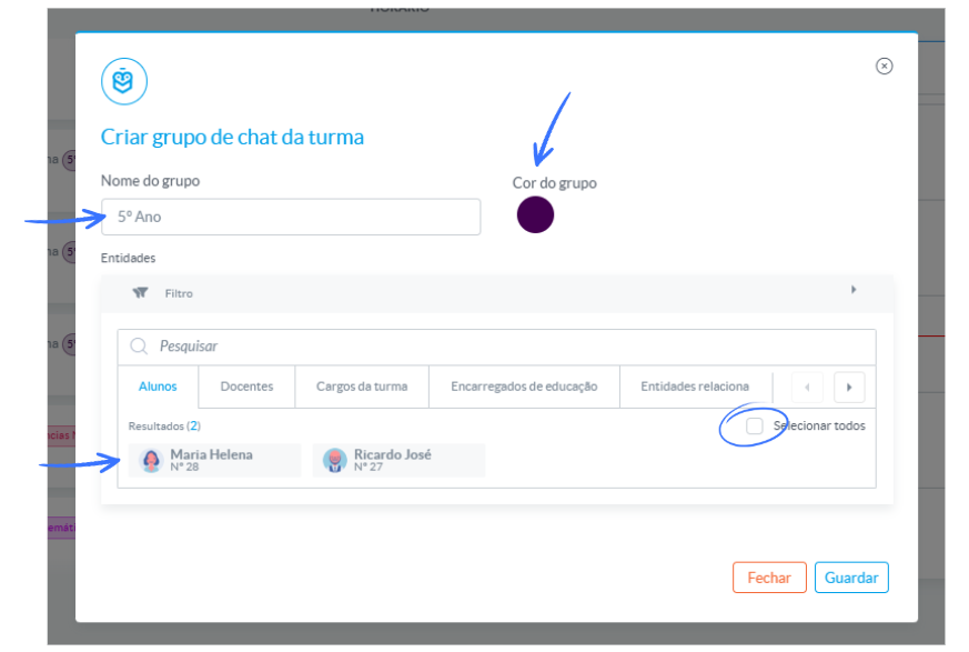 It is now possible to create chat groups directly from the class dashboard, without manually searching for contacts.