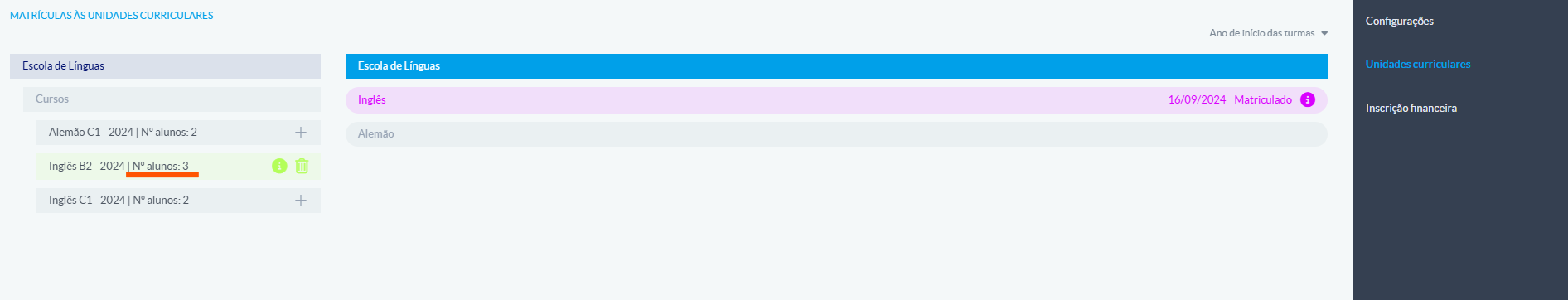 In the student’s profile, under the Curricular Units submenu, it is also possible to view the number of students enrolled in the corresponding class.