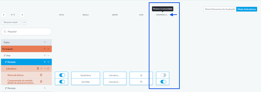 In the “Assessments” menu, edit the assessment grid and enable indicator configuration mode