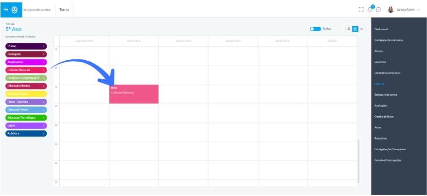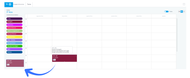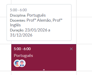 If you need to change the teacher, associate the new teacher with the subject before creating the timetable line.Drag the teacher into the desired day and time in the timetable grid.