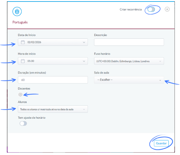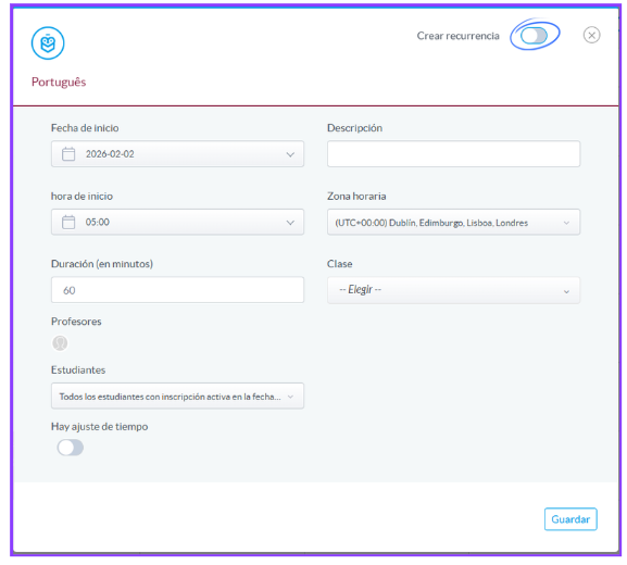 When this option is turned off, the system understands that the lesson will occur only on a specific date.Define: