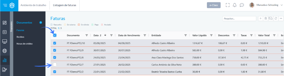 - Click the top checkbox to select all invoices in the list