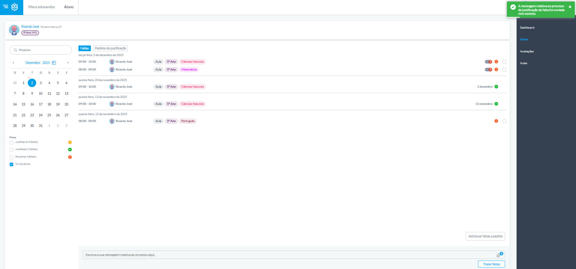 Justificar las ausencias es un proceso sencillo e imprescindible para mantener el historial actualizado. Después de enviar o procesar las ausencias, el sistema envía notificaciones a todas las partes involucradas. Si tienes alguna pregunta, comunícate con los servicios administrativos de la escuela.