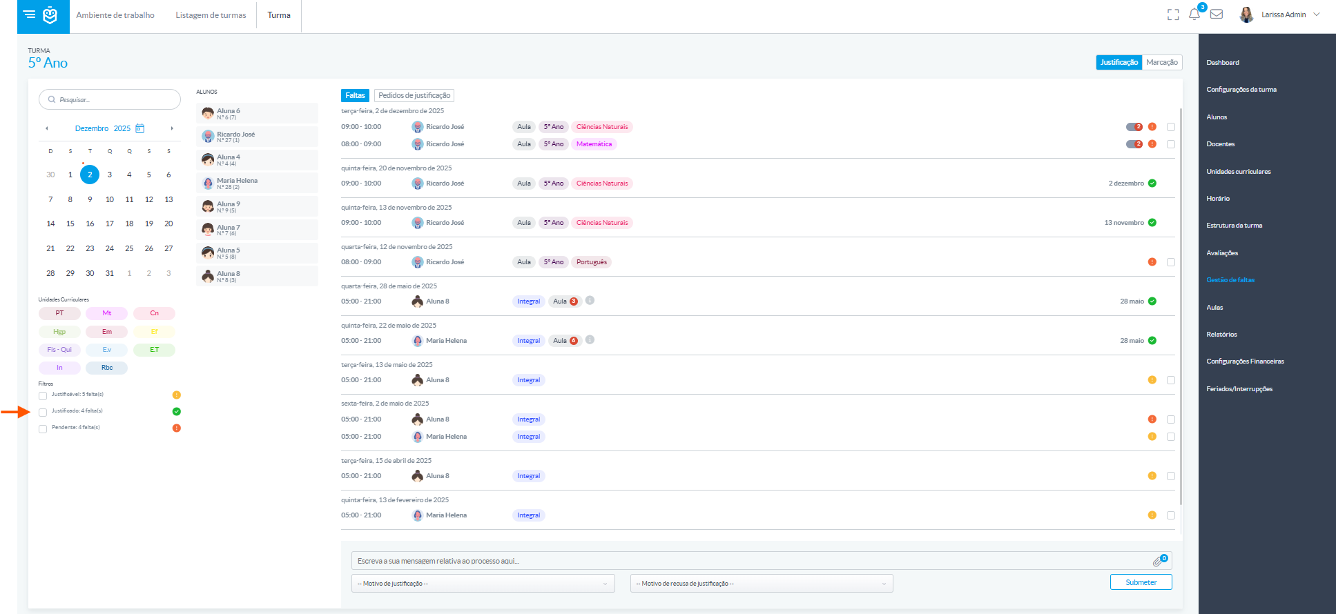 Después de seleccionar la clase, haga clic en el submenú Gestión de ausencias.