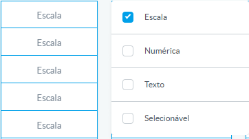 - Elija el tipo (escala, numérico, texto, seleccionable)