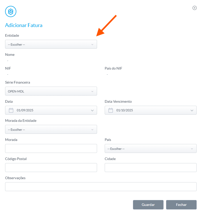 Antes de emitir una factura, la entidad debe existir en el sistema: