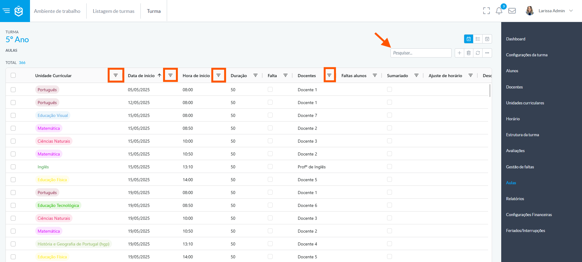 Las lecciones solo se pueden eliminar desde el entorno de la clase, donde las lecciones se organizan de acuerdo con el calendario asociado: