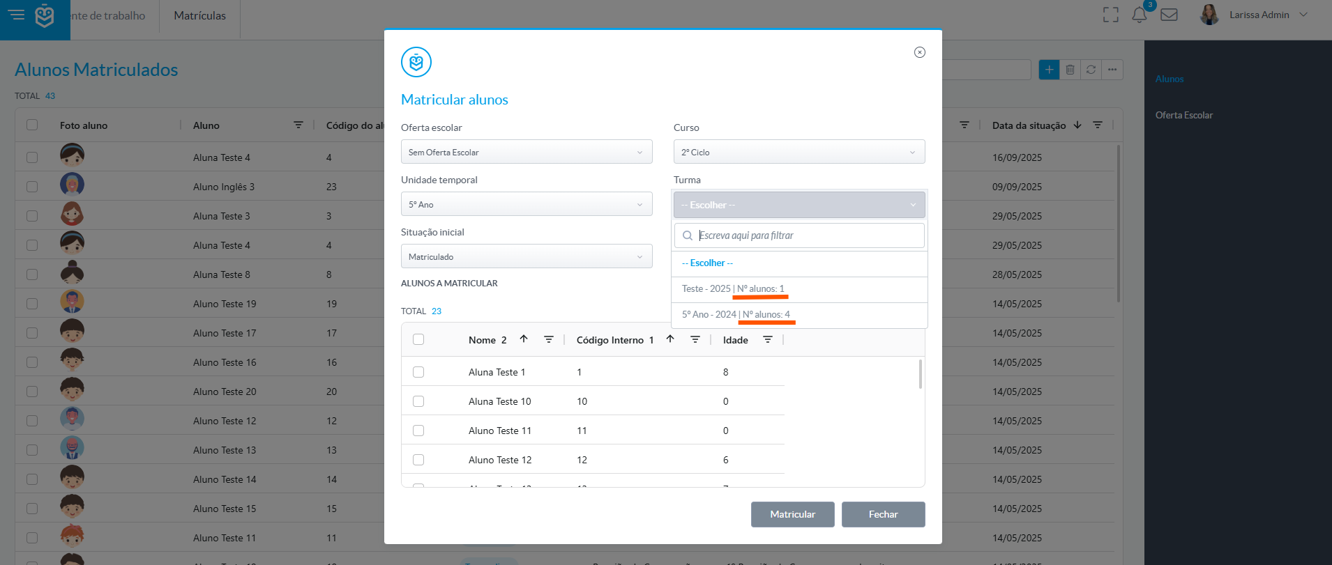 el perfil del alumno, en el submenú Unidades Curriculares, también es posible visualizar el número de alumnos matriculados en la clase correspondiente.