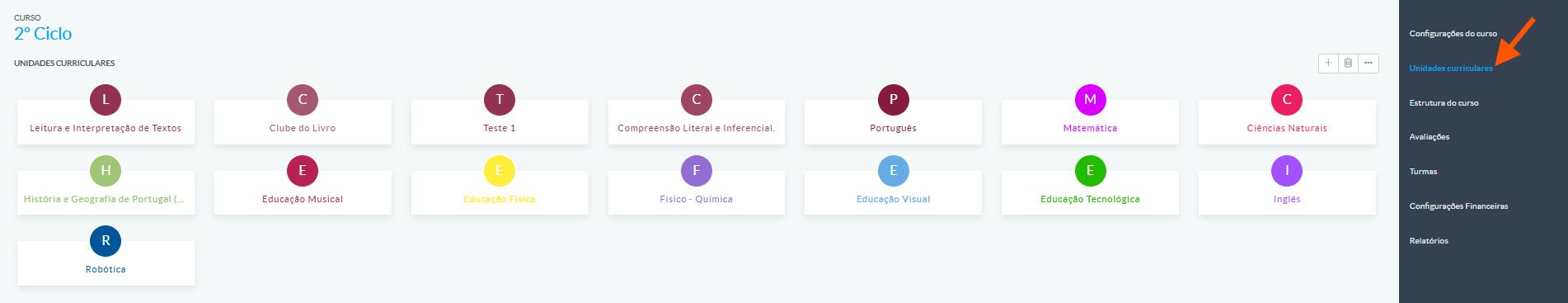 Ir a: Configuración > Unidades Pedagógicas > Curriculares