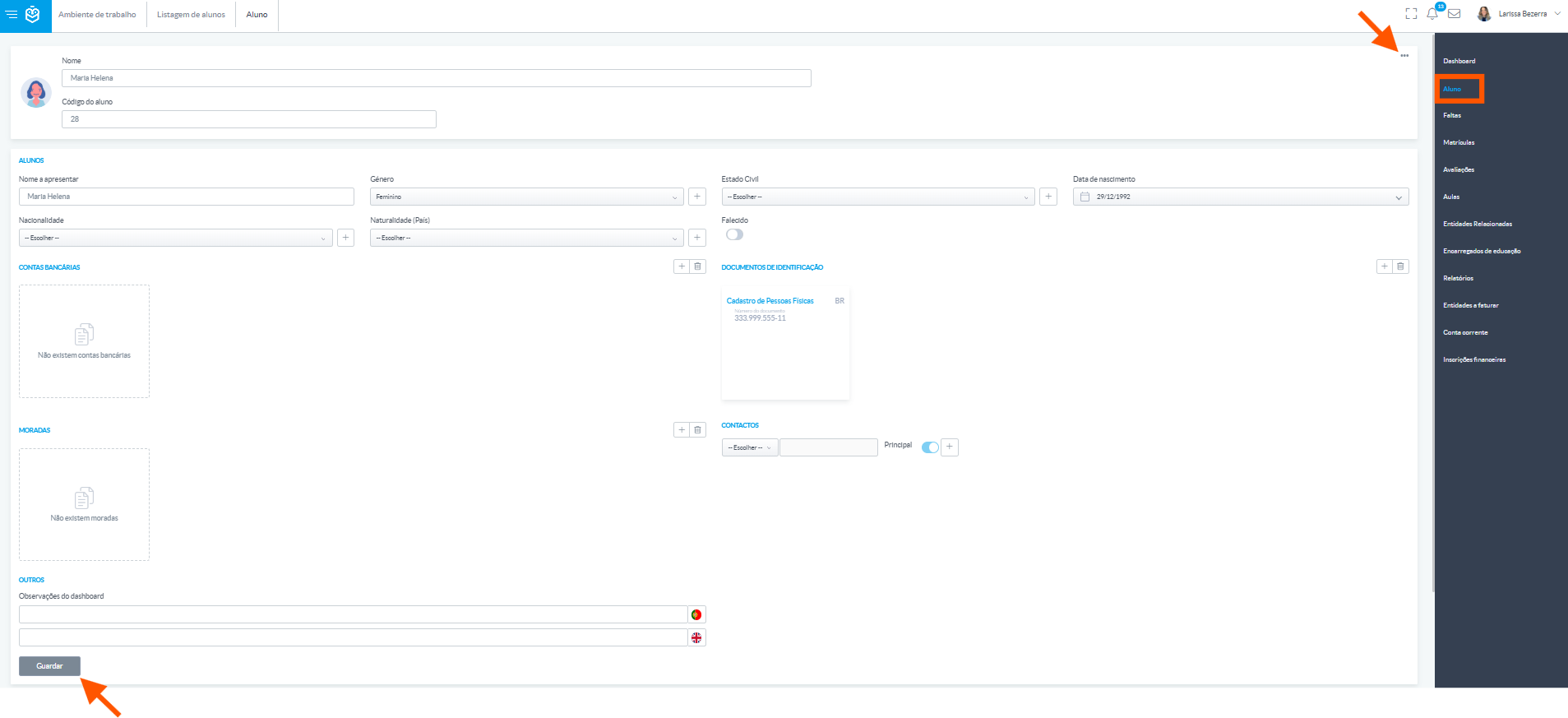 Una vez creada la entidad, se abrirá el perfil completo del alumno. Utilice esta área para actualizar o agregar información relevante, como datos personales, contactos e información del tutor.