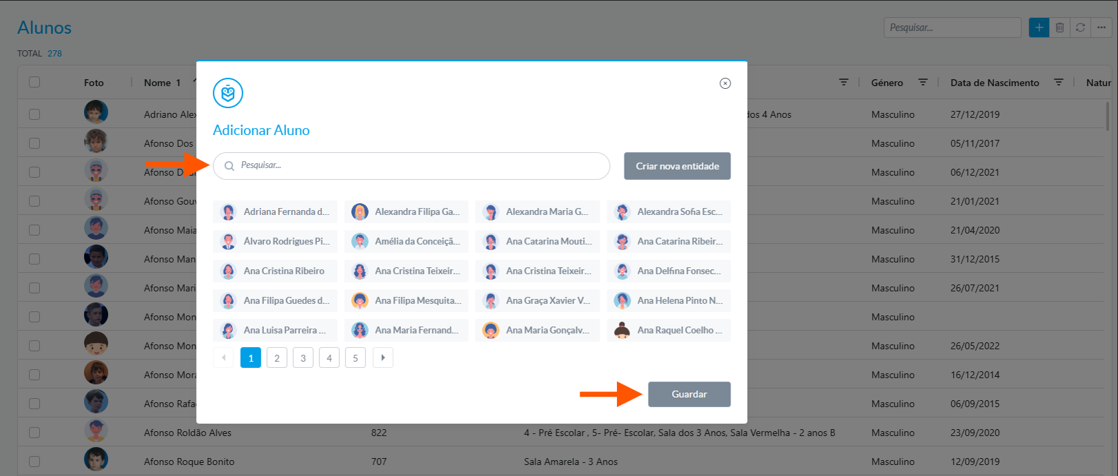 The association is now complete. From this point on, the entity will be part of the selected group and can be managed normally within e-Schooling functionalities.