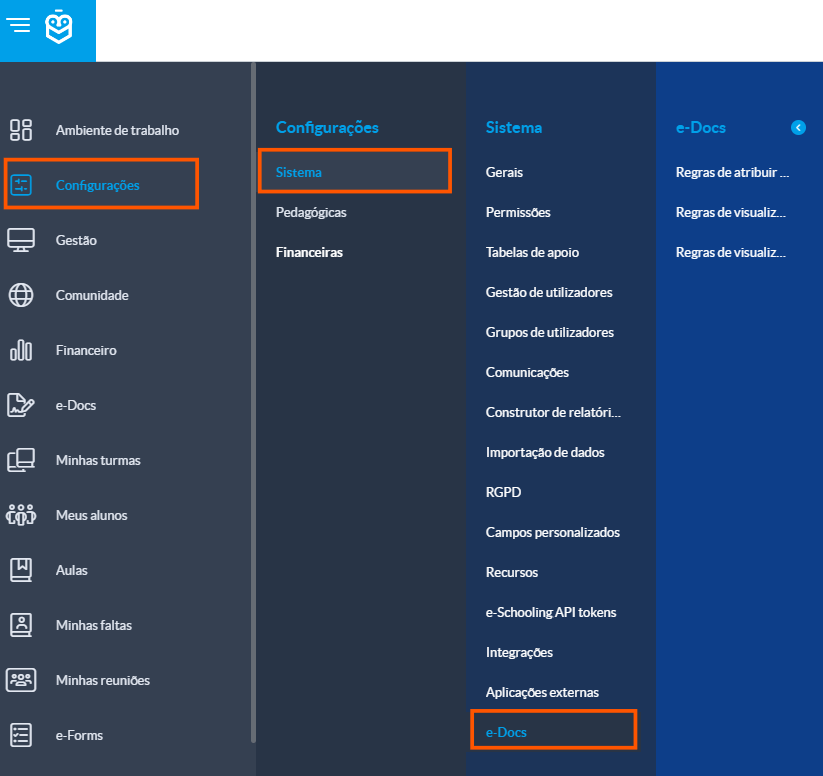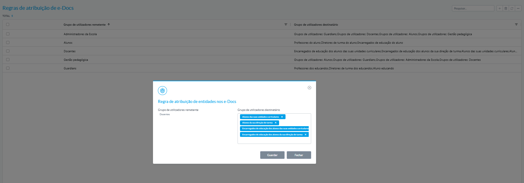 Cada escuela puede definir reglas específicas para controlar quién puede ver y quién puede compartir e-Docs. e-Schooling proporciona un área de configuración para estos permisos, lo que garantiza la seguridad y la flexibilidad.