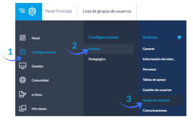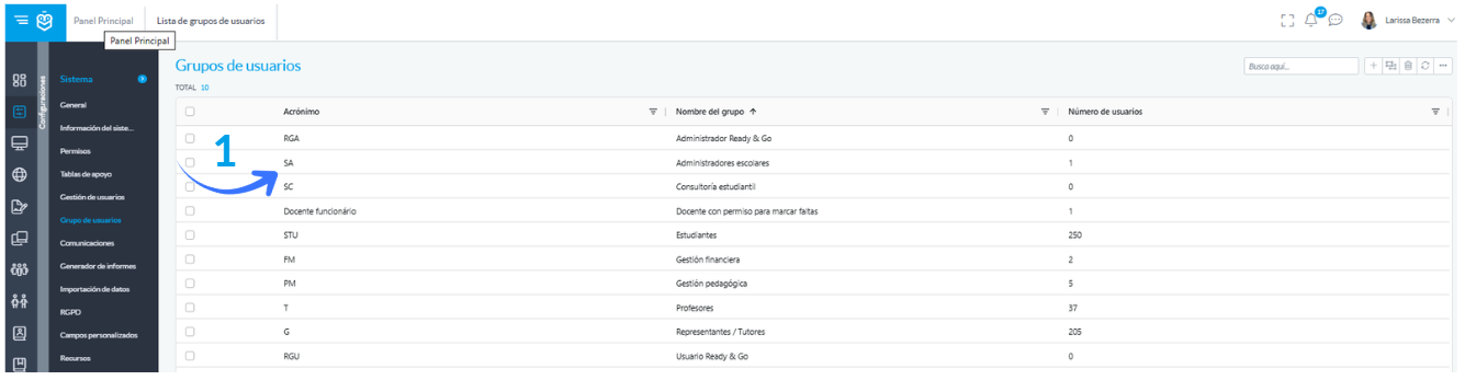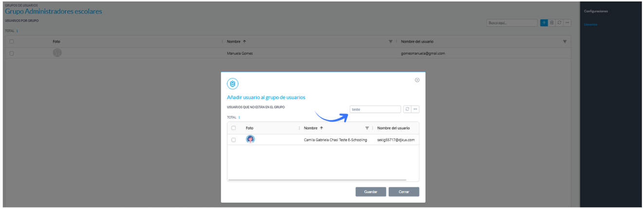 Ejemplo: Se creó un usuario con el perfil "Profesor", pero desea que también tenga el perfil "Administrador" para obtener permisos adicionales para ver, editar y configurar la aplicación. En este caso, debe acceder al menú mencionado anteriormente y realizar la siguiente configuración: