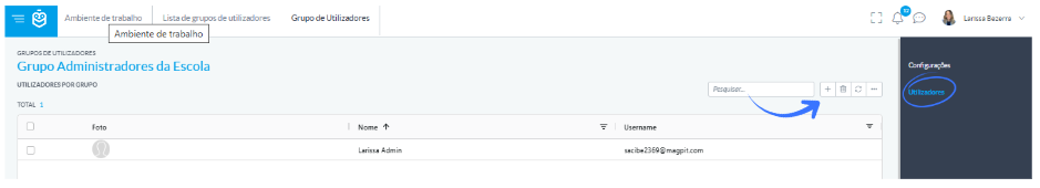 2. En el submenú, seleccione la opción "Usuarios" y haga clic en el icono "+" (Agregar)