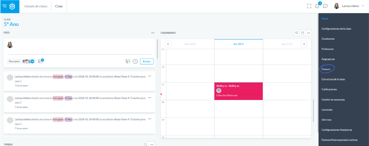 Después de ingresar a la clase deseada, use el menú superior y seleccione Horario, donde puede ver y administrar todas las lecciones asociadas con la clase.