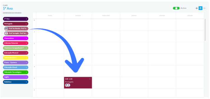 Arrastre al profesor al día y la hora deseados en la cuadrícula de horarios.