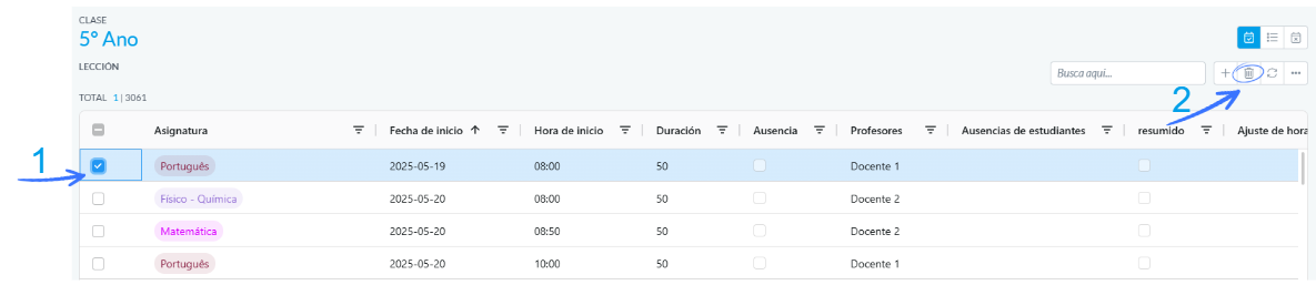 Vaya a la lista de lecciones, seleccione la línea y haga clic en Eliminar