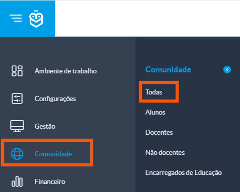 Aceda ao menu Comunidade > Todas
