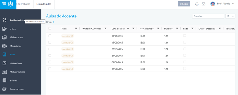 Aceda à secção “Aulas” e selecione a aula desejada