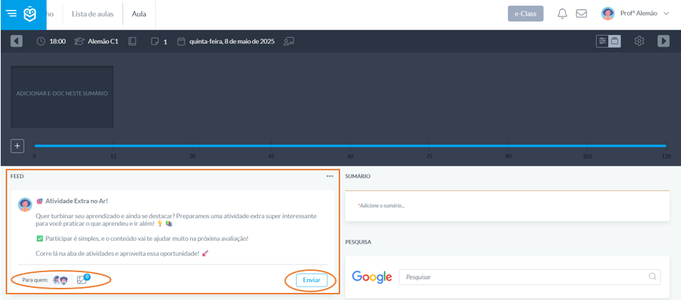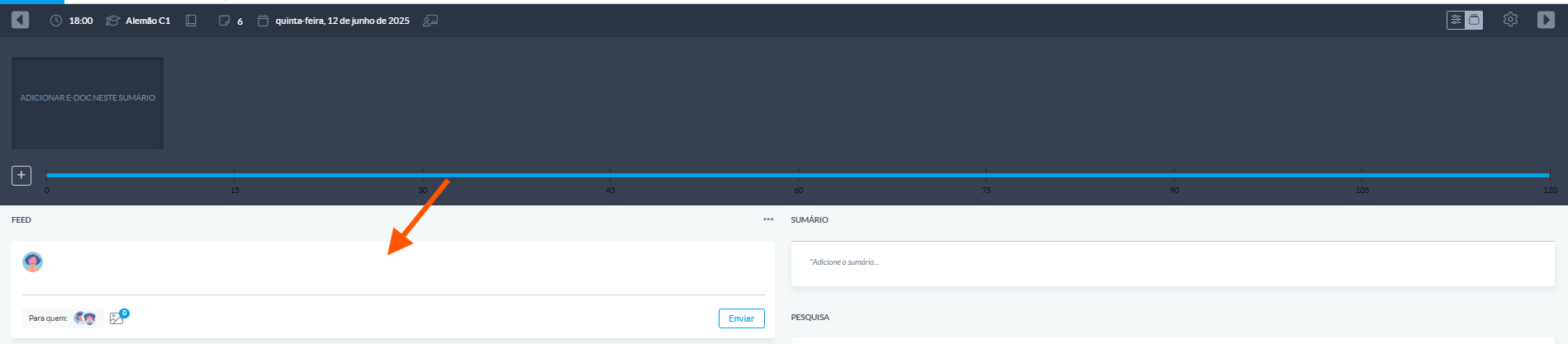 O Feed da aula é uma ferramenta de comunicação direta entre o docente e os alunos da turma, no contexto de uma disciplina específica.