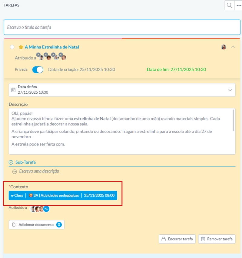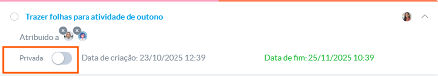 Se desativar a opção Privada, a tarefa passa automaticamente para o modo Pública, ficando também acessível para consulta pelos administradores da escola.