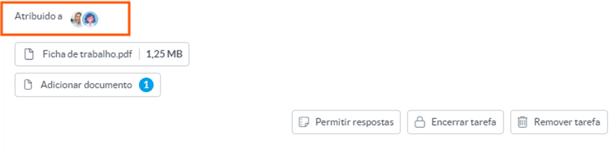 Quando ativa a opção “Permitir respostas”, a tarefa permite que as entidades a quem foi atribuída submetam ficheiros como resposta