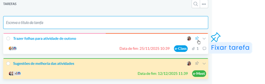 Cada utilizador pode destacar as tarefas mais relevantes para si.Para fixar uma tarefa basta clicar no ícone “Fixar”, localizado no lado direito da linha da tarefa.