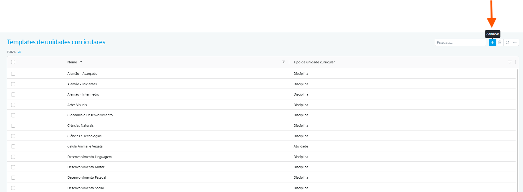 Crie ou selecione a(s) disciplina(s) que pretende associar ao curso com base no template