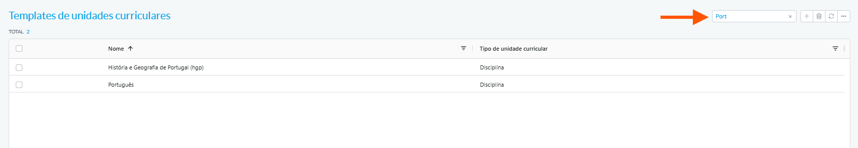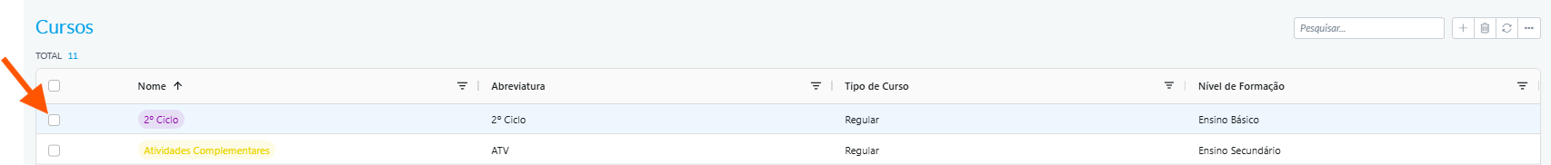 Aceda ao menu: Configurações > Pedagógicas > Unidades Curriculares