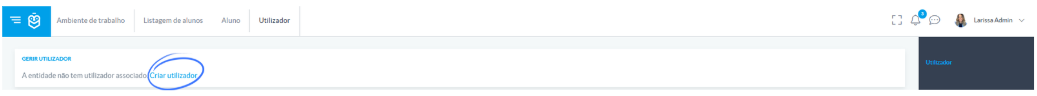 Aceda à ficha da entidade (Aluno, Docente ou Não Docente) e, no submenu correspondente ao tipo de entidade, clique em Gerir utilizador.