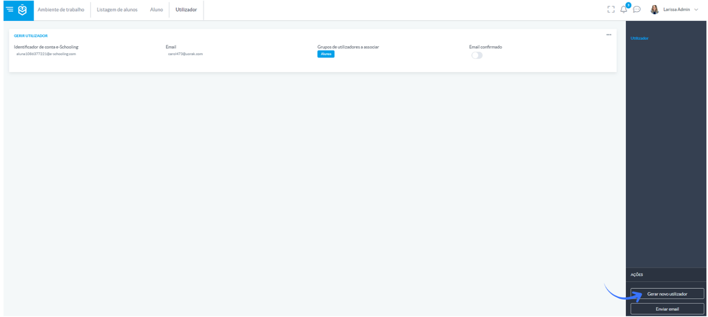 Se o utilizador solicitar a troca do e-mail, poderá gerar novamente o utilizador seleccionando a opção Gerar novo utilizador. Após inserir o novo e-mail, será enviado um novo pedido de ativação.