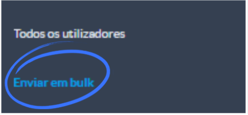Depois de entrar nesta página, no painel lateral direito clique na opção Enviar em bulk, que abre o módulo dedicado à criação de múltiplos utilizadores de uma só vez.